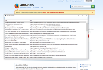 Fast Tab Switcher هو ملحق لمتصفح Firefox مصمم لتعزيز كفاءة التنقل بين التبويبات. هذه الأداة مفيدة بشكل خاص للمستخدمين الذين يعملون بشكل متكرر مع نوافذ متعددة أو العديد من التبويبات المفتوحة في نفس الوقت. من خلال استخدام نهج مركزي على لوحة المفاتيح، يمكن للمستخدمين العثور بسرعة على أي تبويب مرغوب فيه والتبديل إليه عن طريق الضغط على تركيبة المفاتيح الافتراضية Ctrl+Space. هذا يفتح نافذة منبثقة تعرض جميع التبويبات المفتوحة، مما يسمح بالتصفية السريعة عن طريق كتابة أي جزء من عنوان التبويب أو URL.